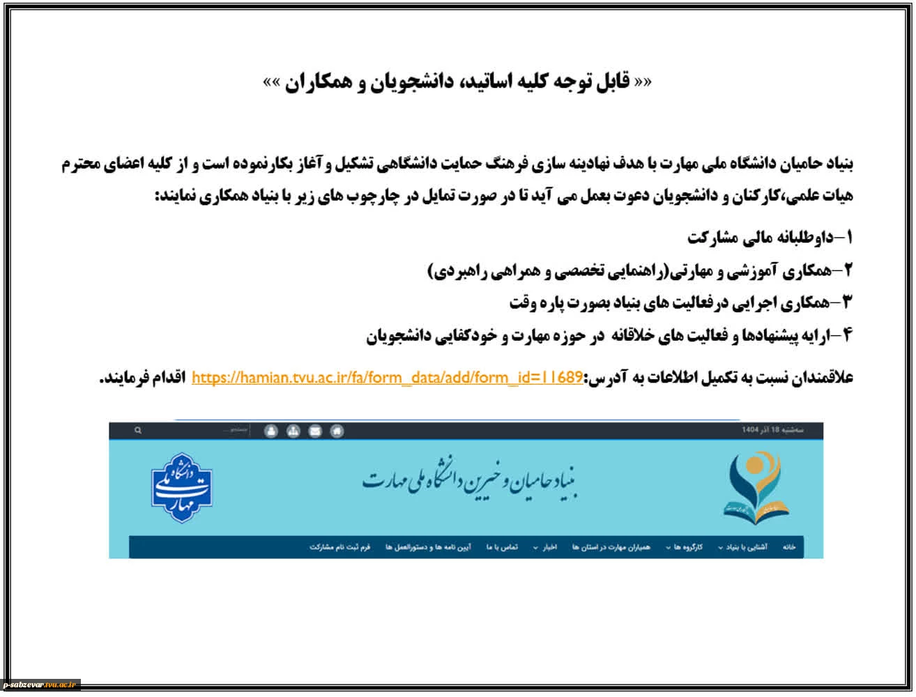 اطلاعیه بنیاد همکاران 2