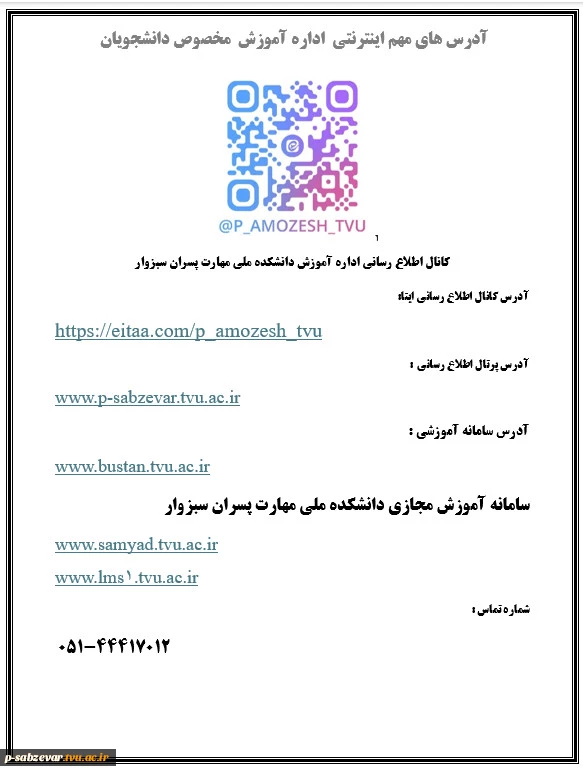 آدرس های مهم اینترنتی اداره آموزش مخصوص دانشجویان 2