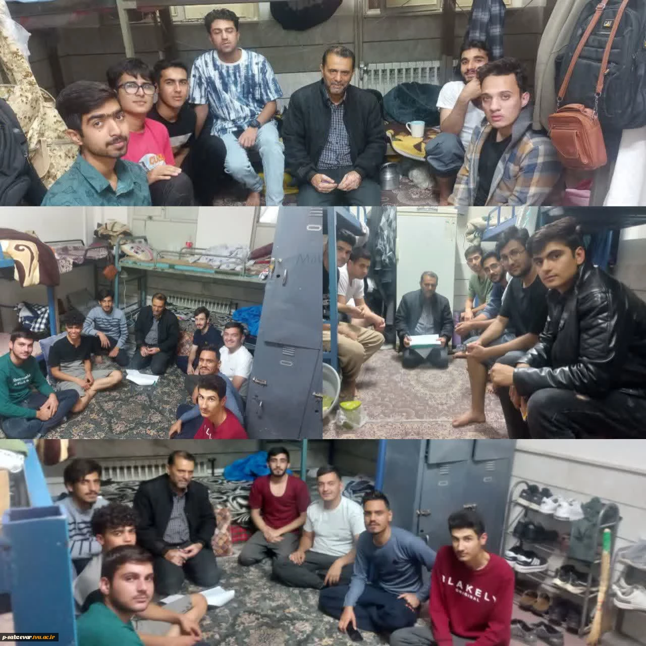در شامگاه جمعه بیست و یکم آذرماه 1404 همزمان با ایام ولادت حضرت فاطمه زهرا (س) حاج آقا کوشکی معاونت محترم دانشجویی و فرهنگی آموزشکده ملی مهارت پسران سبزوار با حضور سرزده در خوابگاه دانشجویی شهید علم الهدی، ضمن بازدید از تاسیسات و تمامی اتاق های خوابگاه، جلسه ای دوستانه و صمیمی با دانشجویان ساکن خوابگاه برگزار نمودند.